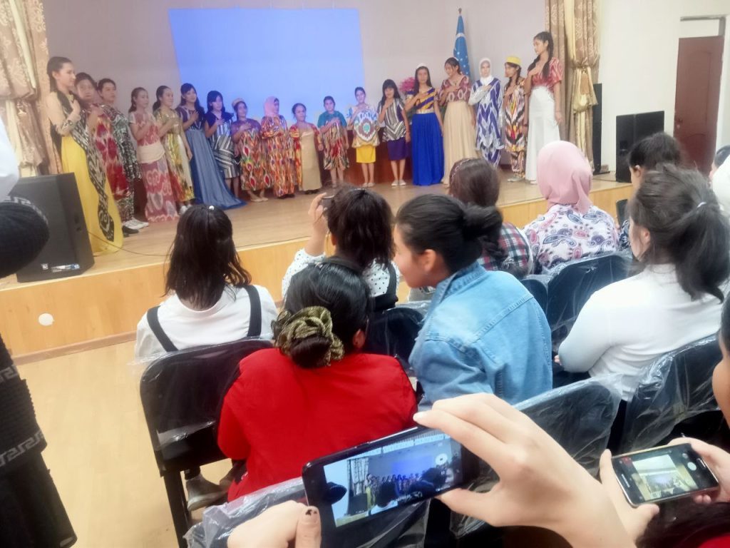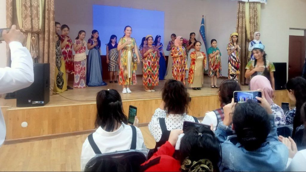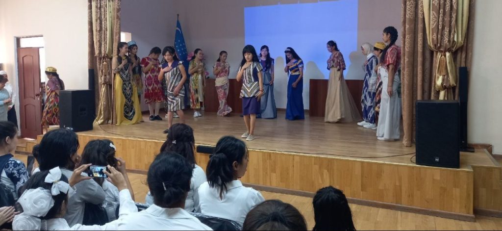 Tadbirda o’quvchilar milliyligimiz shukuhi bo’lmish «Xon atlas» ni turli ranglarda jilovlantirib, barchada ko’tarinki kayfiyat ulashdi.