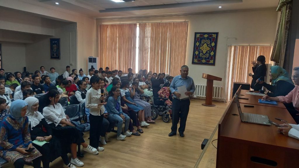 Toshkent imkoniyati cheklangan shaxslar uchun ixtisoslashtirilgan 1-son kasb-hunar maktabida Toshkent shahar OITS markazi shifokori Mamatova Gulnur Mamatovna va «Ishonch va hayot» nodavlat salomatlik markazi yuristi N.G.Portova hamda shifokorlarlari X.A.Abduraxmonova, A.N. Akiyevlar ishtirokida » OITS va SPID» mavzusida davra suhbati o’tkazildi.